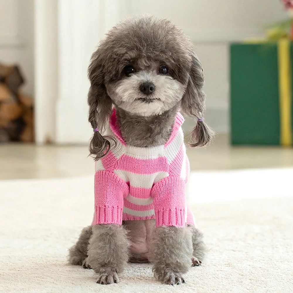 Christmas Dog Cat Sweater Warm Winter Puppy Dogs Clothes With Hat Striped Christmas Jacket Coat Pug Yorkies Yorkshire Clothing
